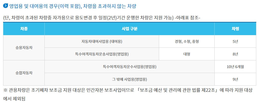 자동차를 이용하는 이유 중에 단순이 자가용이외에도 다양한 경우에 사용하기 때문에 해당 겨웨도 조기폐차 보조금 지원 대상에 범위와 기준이 상이할 수 있습니다.