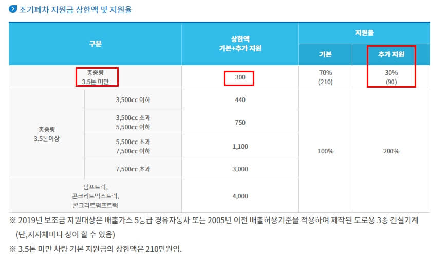 위에서 명시한 기사에서 300만원에서 최최에 노후 차량을 폐차 시 지원금에 70% 상환 받고 추가지원을 받기 위해서는 경우차가 아니 다른 차량을 구매하여 추가 지원금 수령할 수 있게 됩니다.
