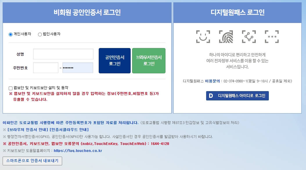 본격적으로 경찰청 교통 민원 24 홈페이지에 로그인 하여 실시간 신호위반 내역을 확인해보겠습니다. 가장 먼저 로그인 단계를 수행해야합니다. 로그인 방법은 공인인증서 방식이기 때문에 공인인증서를 준비해주세요.