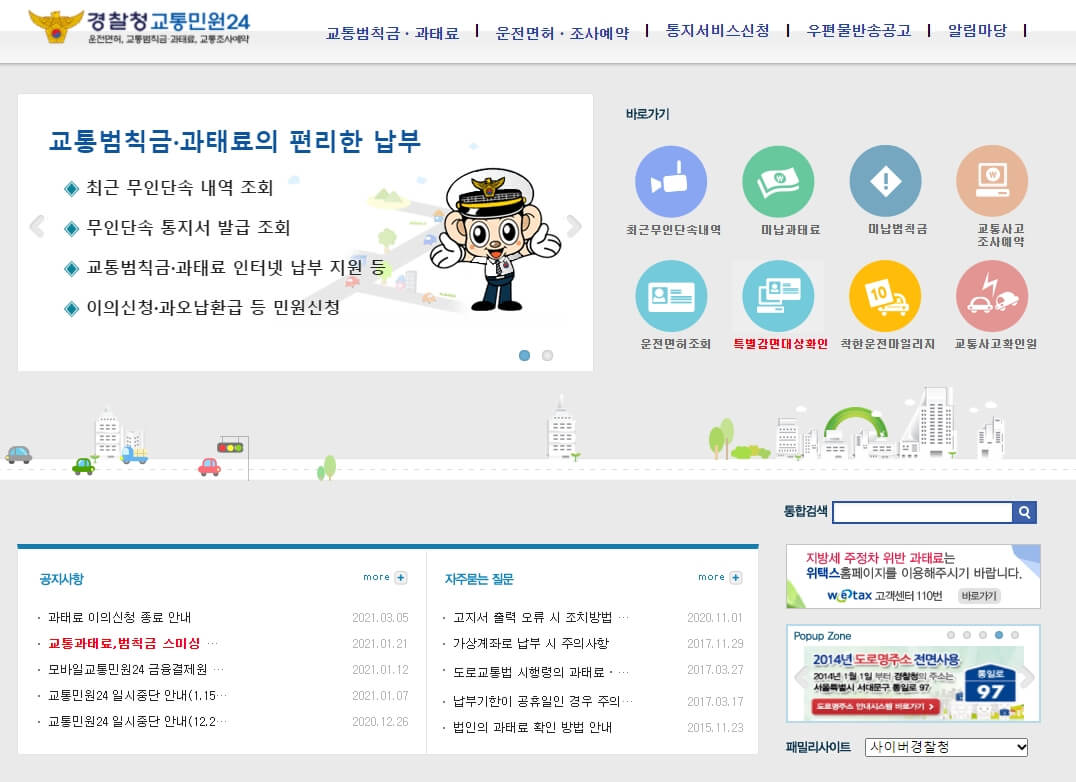 어떤 법이던, 이를 시행하고 관리하는 기고나이 있습니다. 실시간 신회위반을 관리하고 과태료를 관리하는 기관은 경찰청 교통 민원 24라는 기관입니다. 해당 기관에서는 실시간 신호 위반 내역 확인 뿐만아니라 교통에 관련되어 있는 다양한 서비스 제공하고 있습니다.