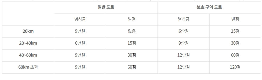 해당 포스팅을 진행하면서 새롭게 알게된 사실이 일반도로와 보호구역 도로에 따라서 빔칙금과 벌점이 상이하다는 점입니다. 벌점을 부가하는 경우 범칙금이 높아지는것을 확인 할 수 있습니다. 어떤한 경우라고 이런 범칙금과 벌점이 부과 되는 일이 없도록 해야합니다.