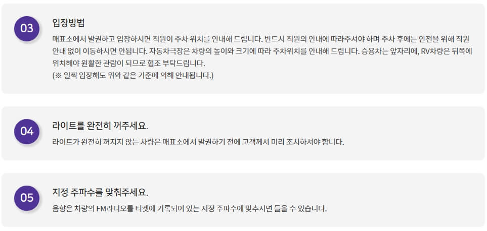 세부적인 용인 자동차 극장 이용방법은 다음과 같습니다. 입장 방법, 라이트 이용 방법, 그리고 소리를 확인 할 수 있도록 자동차 라디오 주파수를 조정해야 합니다. 영화를 보면서 간식을 안 먹을 수 없겠죠 ? 매표소 옆에 매점을 운영하고 있습니다. 그리고 굳이 해당 매점을 이용하지 않고 미리 먹고 싶은 음식을 사서 가도 무관합니다.