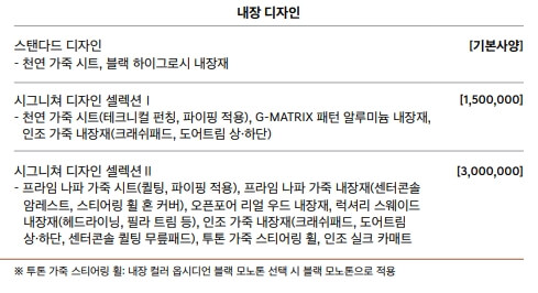 기본적인 SUV 와 다르게 인승타입까지도 옵션으로 선택할 수 있습니다. 자동차를 구매 시 주로 차량을 탑승하는 인원과 용도에 따라서 인승타입을 선택하는 것이 좋습니다.