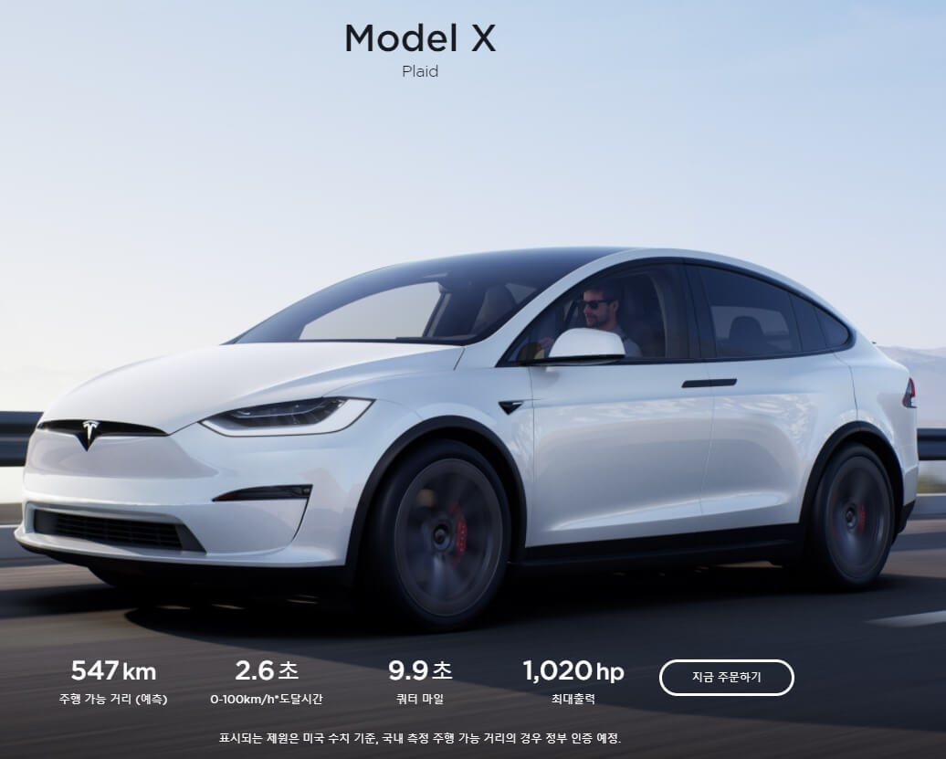 테슬라모델x 주요 정보를 요약하면 주행 거리 547km, 100km 까지 도달하는 시간 2.6초, 최대 출력 1,020hp으로 구성되는 것을 확인 할 수 있습니다. 포스팅을 작성하면서 알게된 사실인데, 테슬라 모델이 SUV 대형으로 구분되고 있습니다.