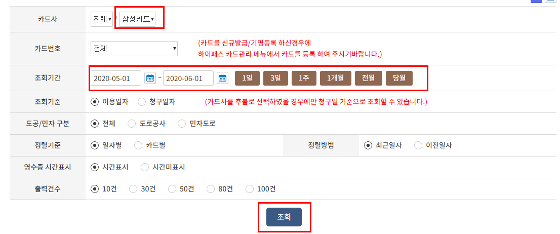 3. 하이패스 사용내역 조회 방법