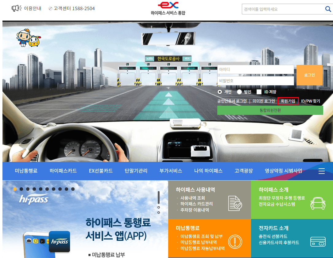 회원가입 절차가 복잡하거나 별도에 서류가 필요한 부분이 아니기때문에 주기적으로 해당 서비스를 이용해야하는 분이라면 가입하는 것도 좋다고 생각되면, 가입 시 자동차 정보와 등록하려는 후불 하이패스 카드를 미리 준비하는 것을 권장드립니다.