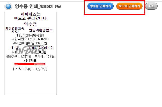4. 하이패스 영수증 출력 방법